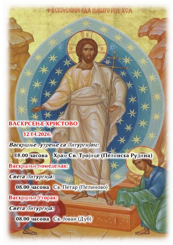 Васкршње јутрење и Света литургија у Цркви Свете Тројице на Пелинској Рудини у 8 сати