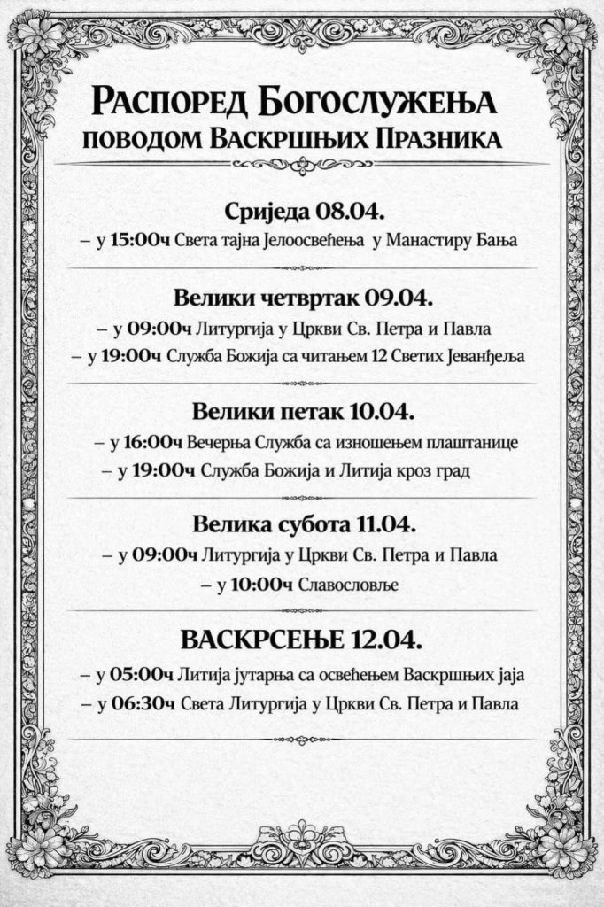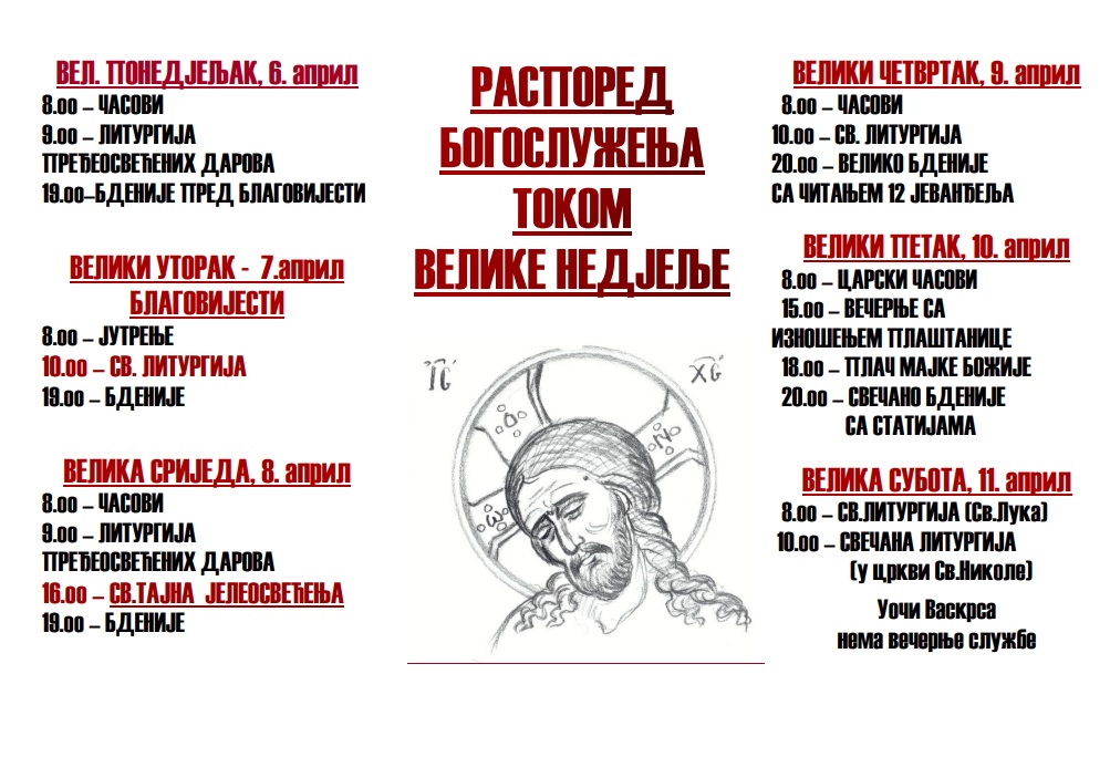 Велико бденије са читањем 12 страдалних Јеванђеља у Цркви Светог Николе у 20 сати