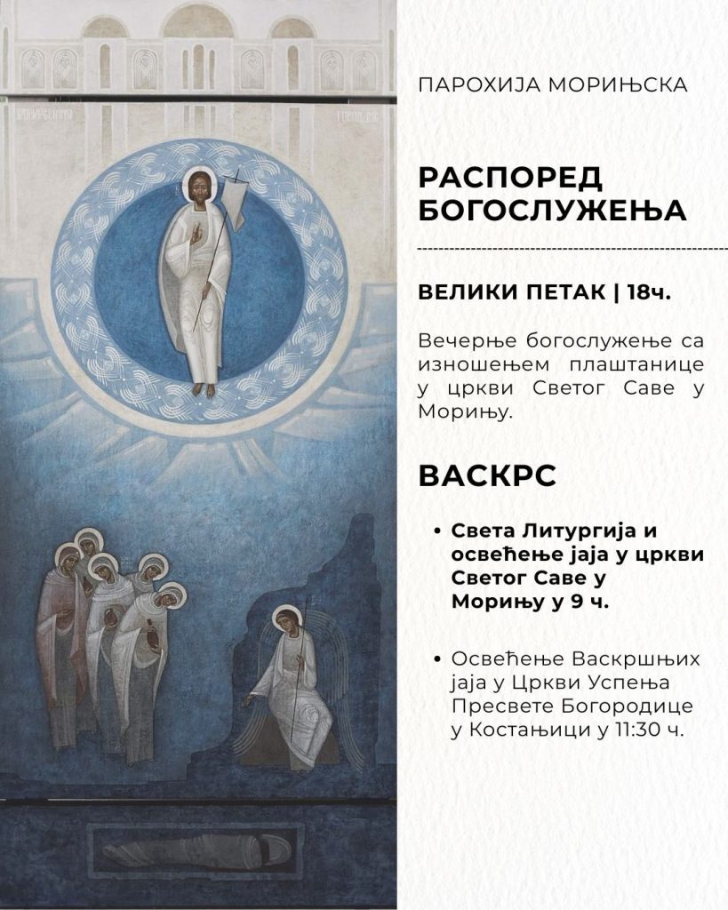 Света литургија и освећење јаја у Цркви Светог Саве у Морињу у 9 сати