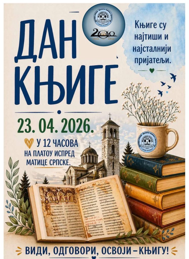 Матица српска – Друштво чланова у Црној Гори обиљежиће 23. априла Дан књиге.