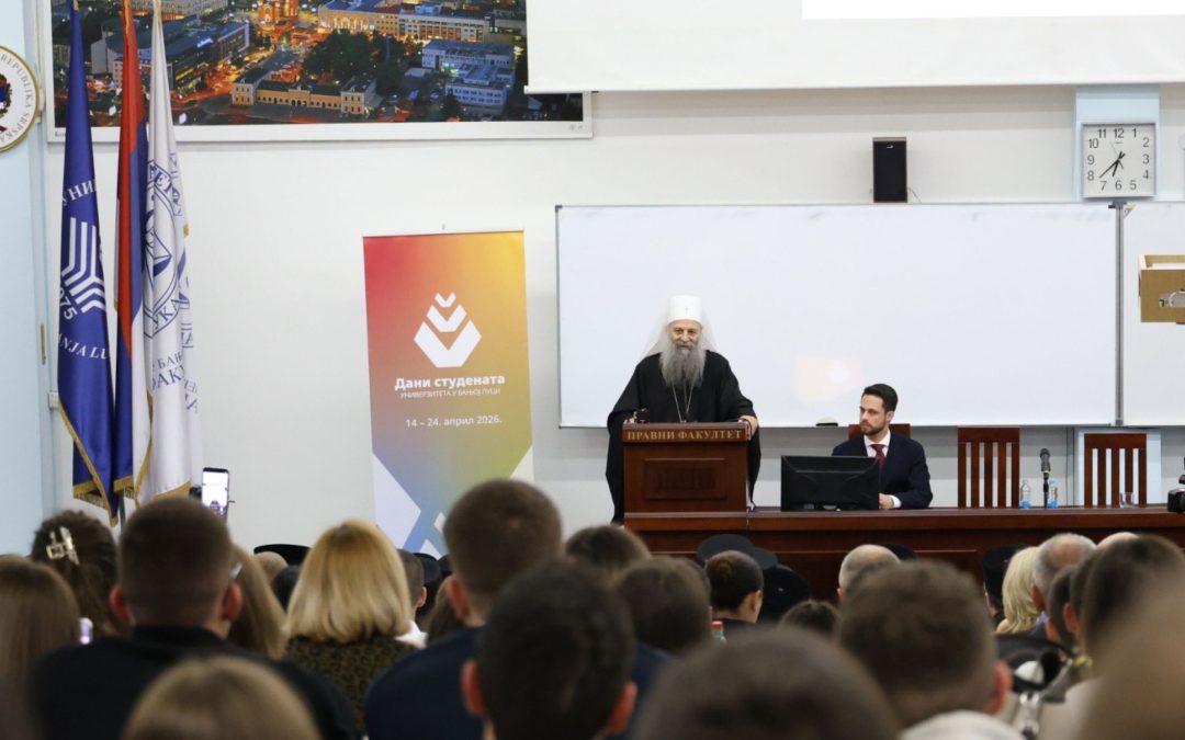 Његова светост Патријарх српски г. Порфирије је одржао предавање на Правном факултету Универзитета у Бањалуци, у присуству ректора Универзитета у Бања Луци проф. др Радослава Гајанина, градоначелника г. Драшка Станивуковића, представника академских и других установа Републике Српске, Епископа пакрачког и славонског г. Јована и Епископа марчанског г. Саве, бројног свештенства и монаштва. Најбројнији међу присутнима били су студенти и професори.