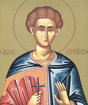 Беше благородног порекла и васпитан добро у вери благочестивој. У време цара Јулијана Оступника, када у Кесарији управљаше црквом Божјом св. Василије Велики, овај Евпсихије ступи у брак са девојком угледном. Но не беше му дано ни једнога дана да поживи у браку. Јер у време његове свадбе деси се незнабожачки празник са жртвоприношењем идолу Фортуни. Евпсихије са друговима оде и полупа све идоле у храму, па и сам храм разори. Чувши за ово цар Јулијан, разгневи се веома и нареди, да се виновници посеку, да се многи хришћани узму у војску, да се удари огроман данак на хришћане, да се о трошку хришћана поново сазида храм Фортуни, и да се граду томе одузме почасно име Кесарија (које му даде кесар Клавдије) и прозове пређашњим именом Маза. Св. Евписхије беше најпре везан за дрво и мучен љуто, а по том посечен, 362 год. Мало по том опаки цар Јулијан посети тај град на своме путу за Персију, против које ратоваше. Св. Василије изиђе му у сусрет и изнесе три јечмена хлеба у знак почасти и гостопримства. Цар нареди да се светитељу да као уздарје једна шака сена. Рече Василије цару: „ти се нама ругаш, о царе, ми ти принесмо хлеб, којим се хранимо, а ти нам дајеш скотску храну коју ти не можеш својом влашћу претворити у храну људску“. — На то цар одговори: „знај да ћу те тим сеном хранити кад се вратим из Персије!“ — Но злобни одступник никада се више не врати жив из Персије, јер погибе тамо заслуженом и неприродном смрћу.