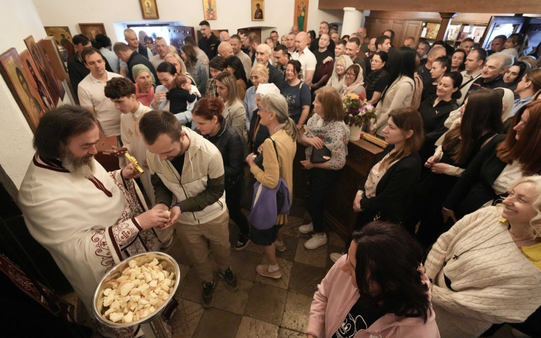 Заједничарење свештенослужитеља и парохијана, настављено је у Светогеоргијевском дому.